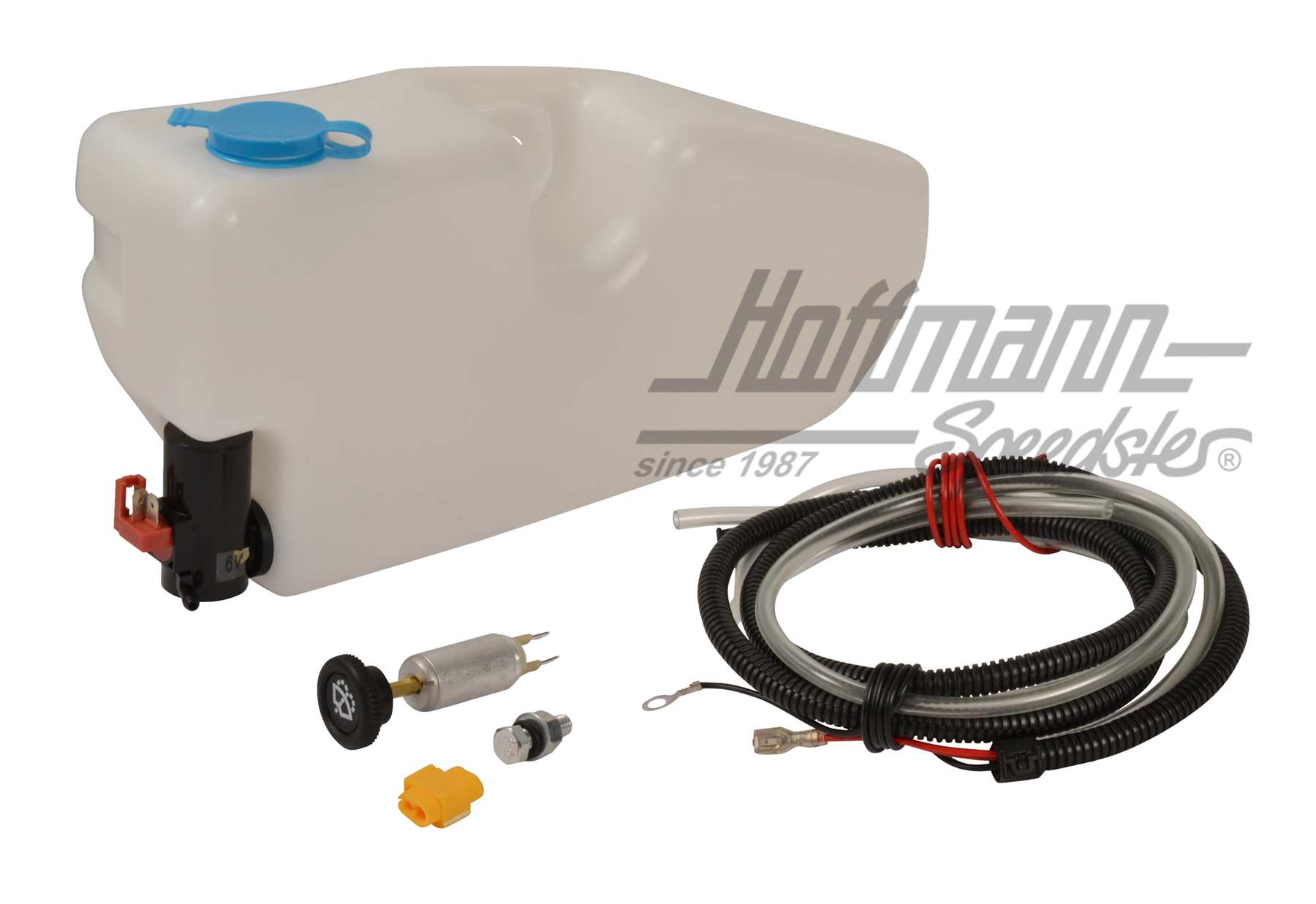 Lieferumfang: Kabelsatz, Schalter und Behälter mit E-Pumpe 6V